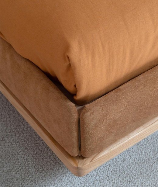 Estrutura em madeira no estilo muxarabi. Barras estofadas com base flutuante.