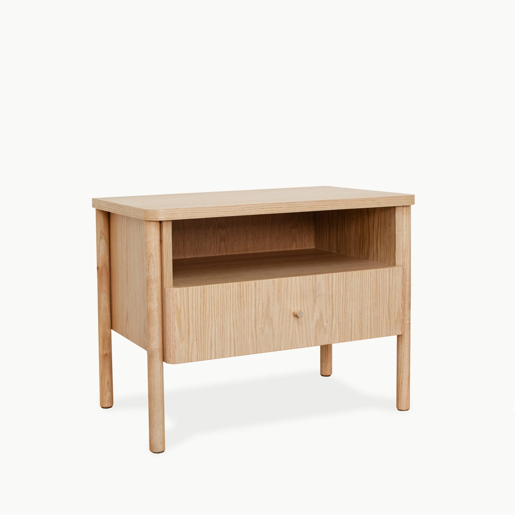 A mesa de cabeceira Alice foi desenhada para a nossa linha Essencial, com o design um pouco mais simples porem sem perder a nossa qualidade. Estrutura em madeira maciça, com pés cilíndricos, 1 ou 2 gavetas com corrediças telescópicas.